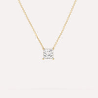 Classic 1 carat floating diamond necklace for women, set with a high brilliance white and eye clean lab diamond in solid 14K yellow gold.