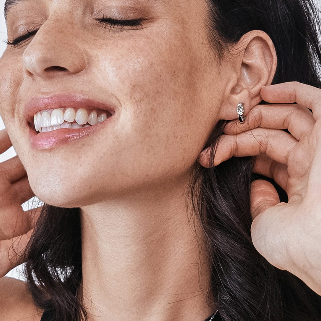 Our diamond hoop earrings come with our exclusively designed english lock style for enhanced comfort, durability and security. The raised post and gold stopper keep your earrings effortlessly tight and straight, no matter what your day throws at you.