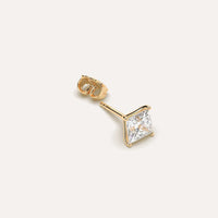 Classic 1 1/2 carat single diamond stud earring for women or men, set with a high brilliance white and eye clean natural diamond in solid 14K yellow gold.
