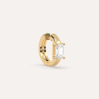 Classic 1/2 carat single diamond hoop earring for women or men, set with a high brilliance white and eye clean natural diamond in solid 14K yellow gold.