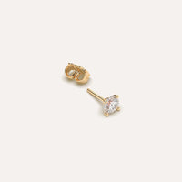 Classic 1/2 carat single diamond stud earring for women or men, set with a high brilliance white and eye clean lab diamond in solid 14K yellow gold.