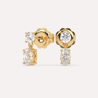 Everyday classic 1 carat total diamond drop butterfly earrings for women (approx. 13mm length), set with high brilliance white and eye clean natural diamonds in solid 14K yellow gold.