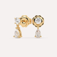 Everyday classic 1 carat total diamond drop earrings for women (approx. 12mm length), set with high brilliance white and eye clean natural diamonds in solid 14K yellow gold.
