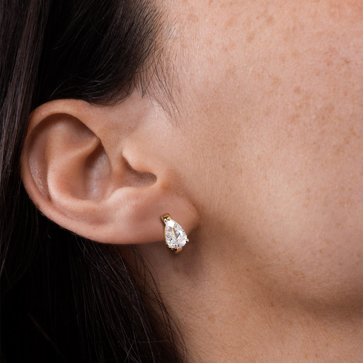 Classic 3 carat total diamond hoop earrings for women, set with high brilliance white and eye clean natural diamonds in solid 14K yellow gold.