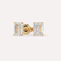 Classic 4 carat total diamond stud earrings for women, set with high brilliance white and eye clean natural diamonds in solid 14K yellow gold.
