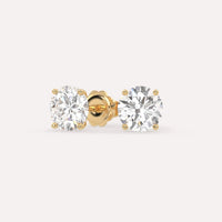 Classic 4 carat total diamond stud earrings for women, set with high brilliance white and eye clean lab diamonds in solid 14K yellow gold.
