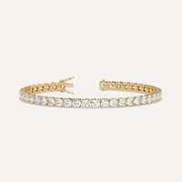 Classic 10 carat tennis bracelet for women, set with a high brilliance white and eye clean natural diamonds in solid 14K yellow gold.