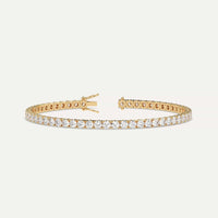 Classic 6 carat tennis bracelet for women, set with a high brilliance white and eye clean natural diamonds in solid 14K yellow gold.