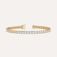 Classic 8 carat tennis bracelet for women, set with a high brilliance white and eye clean natural diamonds in solid 14K yellow gold.