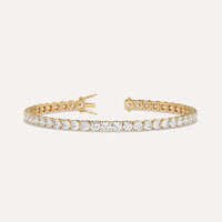 Classic 9 carat tennis bracelet for women, set with a high brilliance white and eye clean natural diamonds in solid 14K yellow gold.