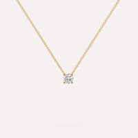 Classic 1/4 carat floating diamond necklace for women, set with a high brilliance white and eye clean natural diamond in solid 14K yellow gold.