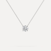 Classic 1 carat floating diamond necklace for women, set with a high brilliance white and eye clean natural diamond in solid 14K white gold.