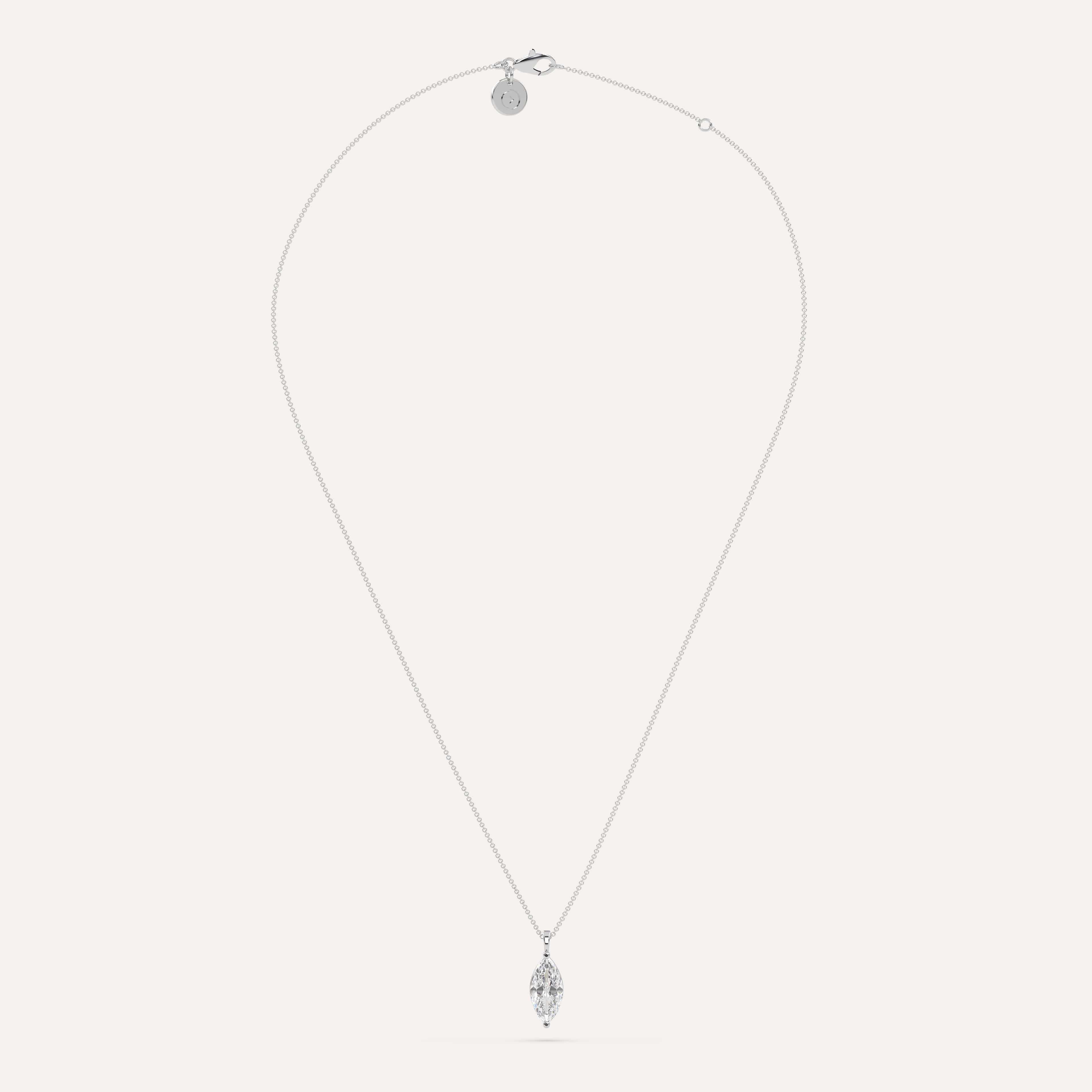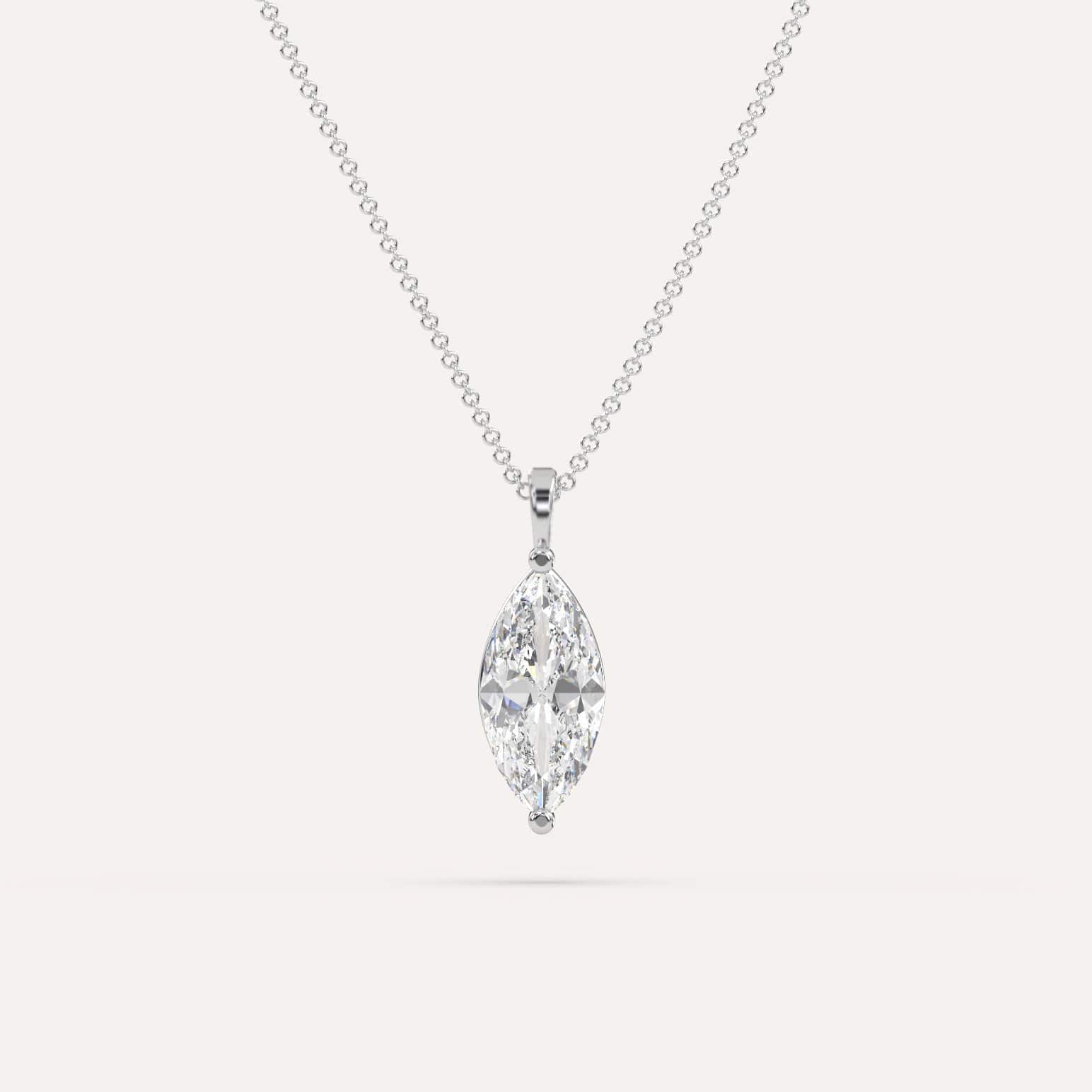 Classic 2 carat simple diamond pendant necklace for women, set with a high brilliance white and eye clean natural diamond in solid 14K white gold.