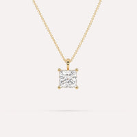 Classic 2 carat simple diamond pendant necklace for women, set with a high brilliance white and eye clean natural diamond in solid 14K yellow gold.