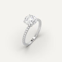 Pave 2 carat round cut engagement ring, set with a high brilliance white and eye clean lab diamond in solid 14K white gold.