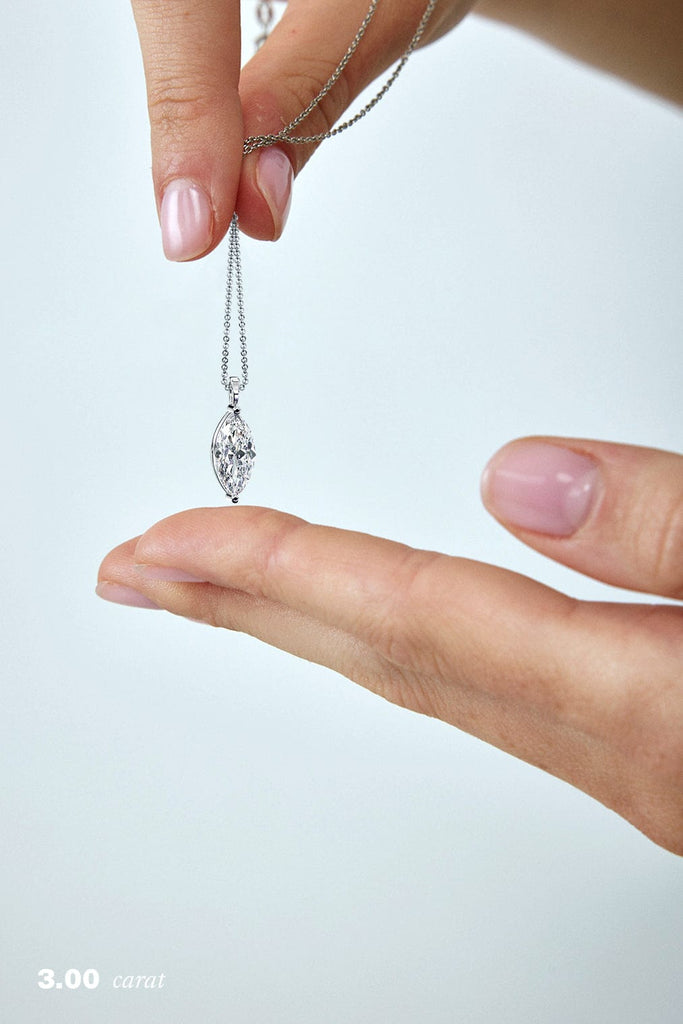 Classic 3 carat simple diamond pendant necklace for women, set with a high brilliance white and eye clean natural diamond in solid 14K yellow gold.