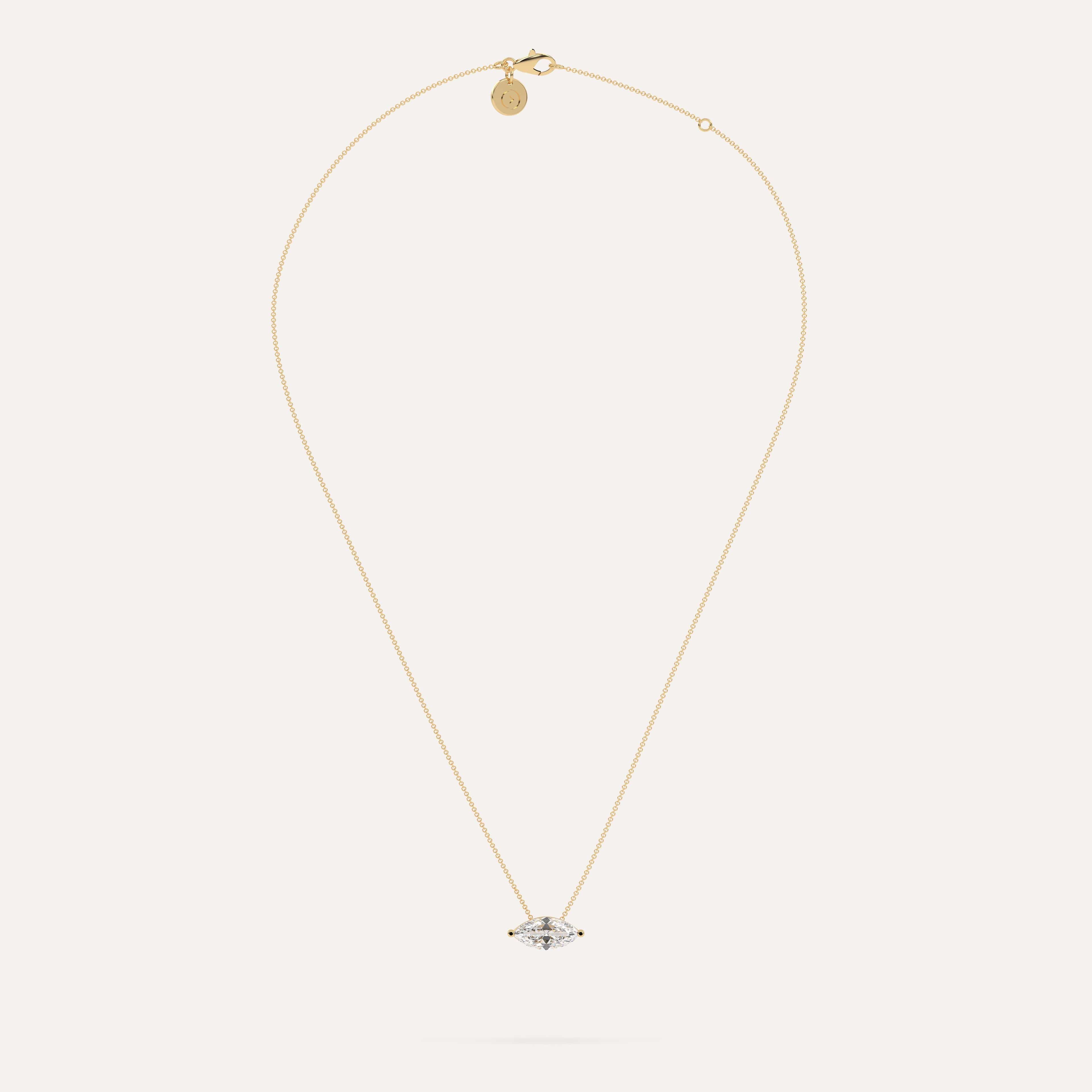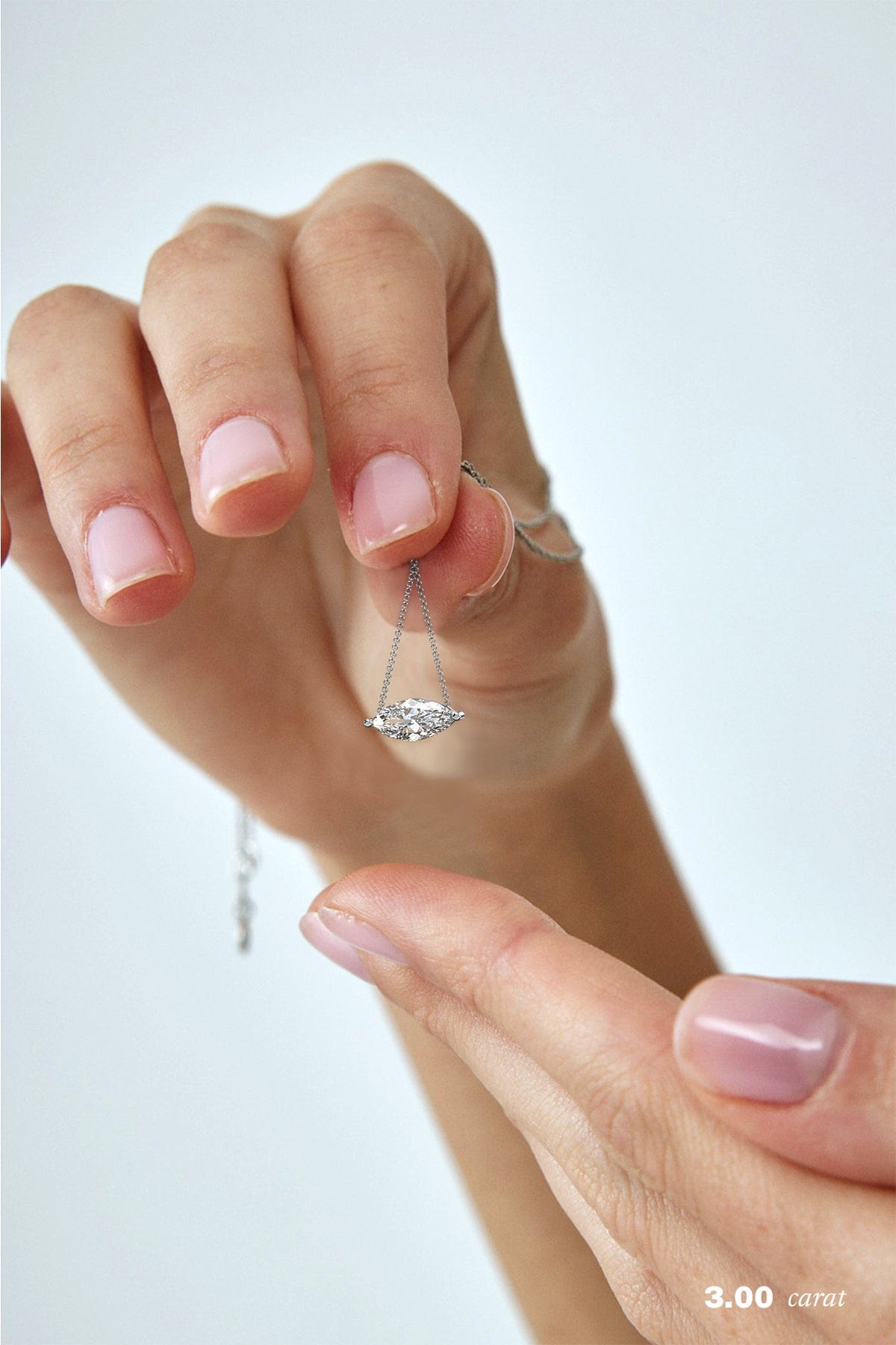 Classic 3 carat floating diamond necklace for women, set with a high brilliance white and eye clean natural diamond in solid 14K yellow gold.