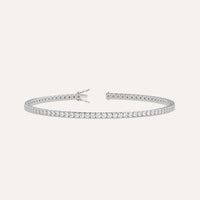 Classic 3 carat tennis bracelet for women, set with a high brilliance white and eye clean lab diamonds in solid 14K white gold.